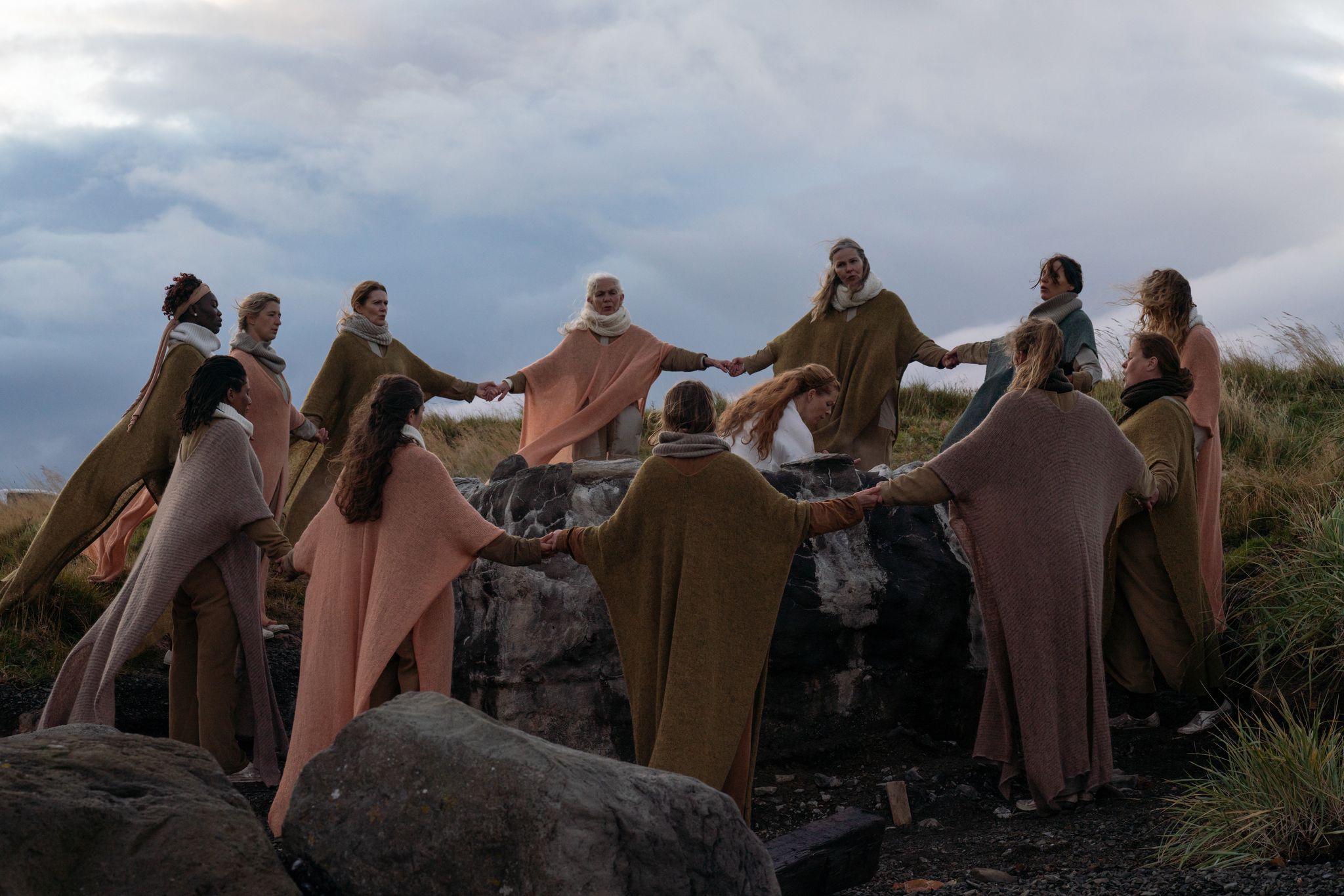 Sértrúarsöfnuðurinn tilbiður náttúruna og náttúruöflin, rækta á landsvæðinu sem tilheyrir þeim og framleiða með náttúrulegum aðferðum. Við vildum undirstrika ofantalin atriði í búningunum. Sniðin voru afslöppuð, karakterar sem unnu á svæðinu voru í verklegum vinnugöllum og í athöfnum mátti sjá hugleiðslusjöl.